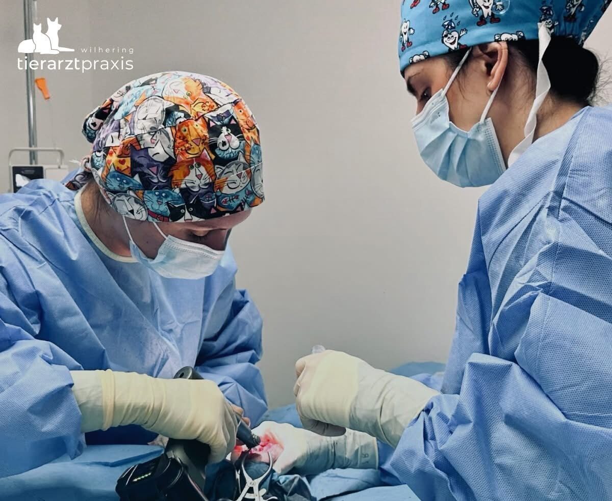Chirurgin Dr. Andrea Schmid bei einem Eingriff für einen Hund mit Kreuzbandriss